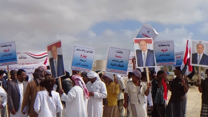وقفة احتجاجية للمقاولين تطالب بصرف مستحقاتهم من محافظ المهرة طالب اتحاد مقاولين ابناء محافظة المهرة المشير عبدربه منصور هادي رئيس الجمهورية ودولة رئيس الوزراء ال...