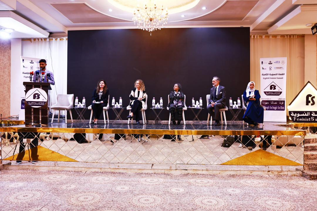 وفي كلمتها الافتتاحية، قالت رئيسة مؤسسة وجود للأمن الإنساني مها عوض إن القمة النسوية تمثل مساحة تأسيسية للحوار وتبادل الخبرات وبناء ملكية أكثر شمولًا لعملية السلام، رغم تنامي التهديدات المناهضة لحقوق المرأة ولمن يدافع عنها في بلد تغيرت فيه هياكل الدولة وازدادت عسكرة الحياة العامة.