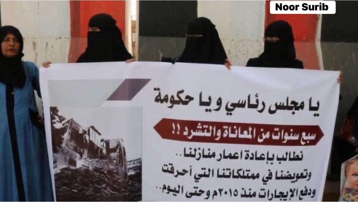 وأضافت أن الأهالي سبق وأن نظموا في عام 2022 وقفة احتجاجية أمام القصر الرئاسي في عدن، طالبوا خلالها مجلس القيادة الرئاسي بالتدخل لمعالجة قضيتهم، وإعادة إعمار منازلهم أو تقديم دعم مالي يساعدهم على تغطية نفقات الإيجار.