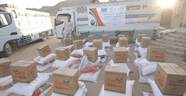 الهلال الأحمر الإماراتي يقدم مساعدات غذائية لاهالي مديرية ساه بوادي حضرموت