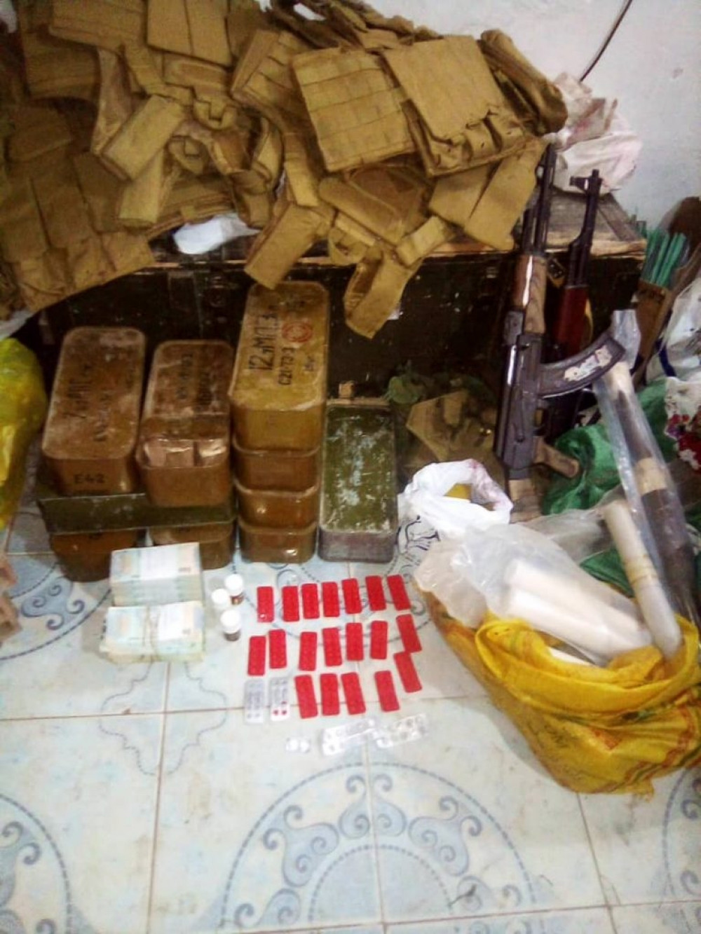 وأضاف المصدر: عن تفتيش الباص كالأجراء الأمني الذي يقوم به جنود النقطة, وجدوا في الباص بطريقة ( 22 شريط حبوب مخدرة , 11 شنطة ذخائر , 3 قذائف و22 حشوة ار بي جي, وجعب بالإضافة الى سلاح آلي كمية 2 , ومبلغ مالي وقدره مليون ريال.