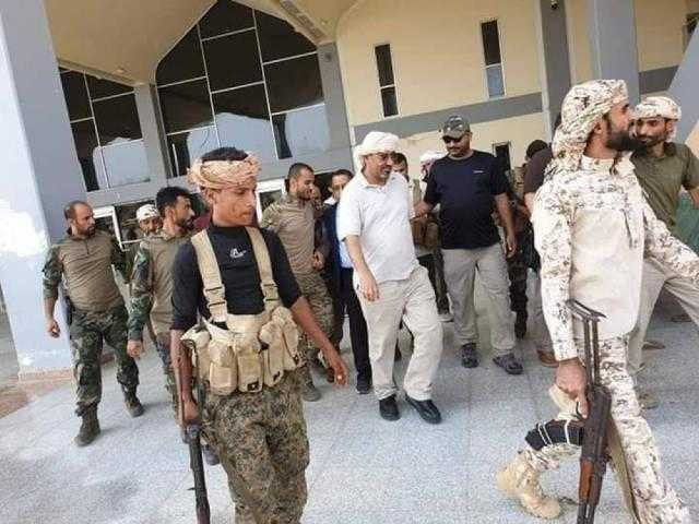 ورافق الزبيدي خلال زيارته نائبه هاني بن بريك، وشهدت مدينة عدن امس اشتباكات محدودة عقب سيطرة قوات الجيش على مطار عدن وقصر معاشيق من قوات الانتقالي، التي استطاعت استعادتها في وقت لاحق.