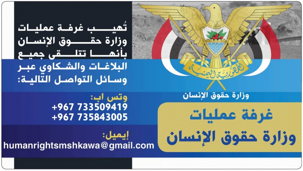 تنفيذاً لتوجهات معالي وزير حقوق الإنسان الدكتور محمد محسن عسكر ، بشأن استقبال الشكاوى والبلاغات الطارئة ، والتأكد منها ومساعدة المواطنين على النحو المطلوب، فقد تم تفعيل غرفة عمليات في وزارة حقوق الإنسان عبر إدارة الشكاوى والبلاغات وذلك على مدار 24 ساعة