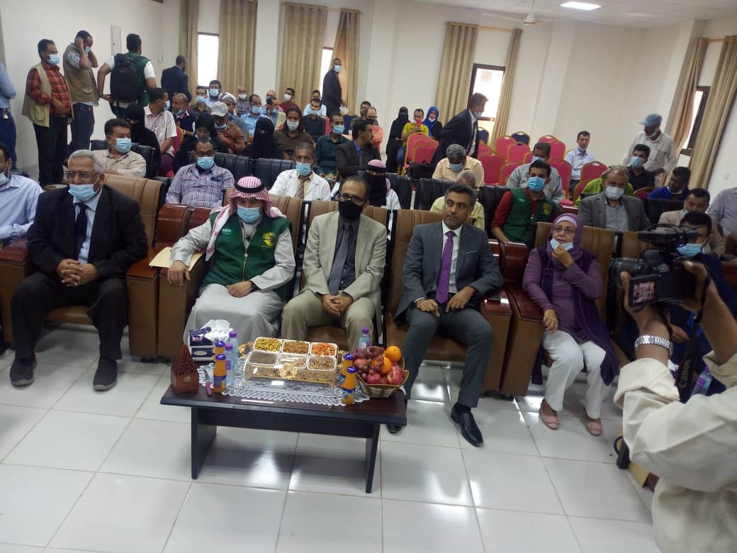 وفي حفل التدشين القى وزير الصحة العامة والسكان الدكتور قاسم محمد بحيبح كلمة أشاد بالدور الإيجابي والريادي لمركز الملك سلمان الذي دوما في المقدمة في دعم المشاريع المختلفة لبلادنا وخصوصا تقديم العون للقطاع الصحي والمتمثلة اليوم في تقديم الأجهزة الطبية واجراء عدد كبير من العمليات الجراحية في مجال العيون للذين لا توجد لديهم الإمكانيات المادية.
