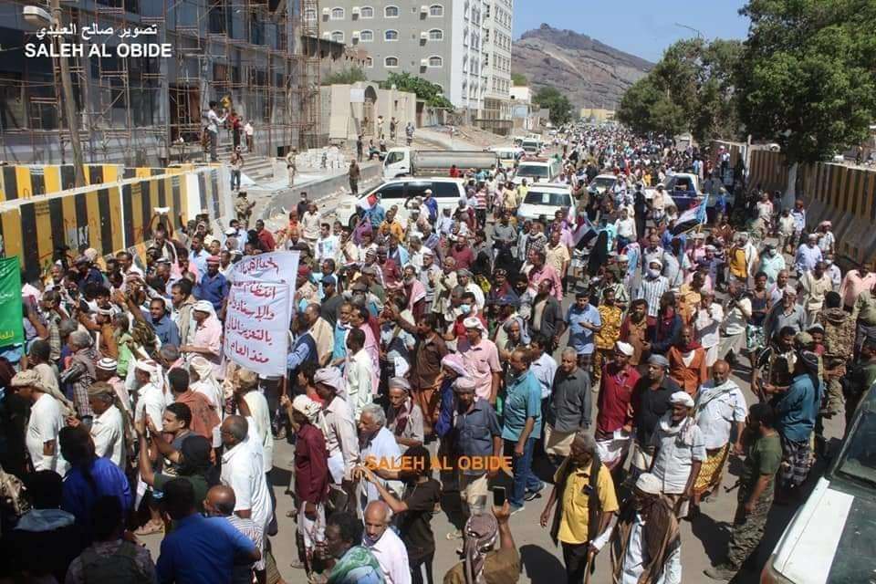 إننا في هذه الوقفة الاحتجاجية نطالب حكومة معاشيق أن تتحمل المسئولية تجاه الشعب أو تقدم استقالتها وتترك المجال لذوي الكفاءة ومن يحترمون شعبهم ونؤكد لحكومة معاشيق إذا لم تستجيب بأننا سنستمر في التصعيد السلمي حتى نيل حقوقنا المسلوبة ونوجه هذا النداء لجميع المحافظات أن تكون على هبة الاستعداد للتصعيد السلمي كلا في محافظته وهذه بعض مطالبنا لحكومة معاشيق.