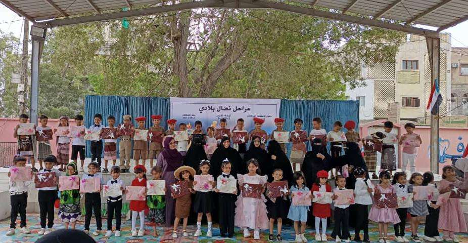 أبدع أطفال الروضة في إلقاء فقرة شعرية حملت في أبياتها حب الوطن وتضحيات الشهداء، قبل أن ينتقلوا إلى تقديم اللوحة الفنية الرئيسة للحفل: "ملحمة نضال بلادي". لوحة جسّد فيها الأطفال، بحماسة وبراءة، مسار الكفاح الجنوبي نحو الحرية، فامتزجت الحركة بالموسيقى والصوت بالروح، وارتسمت على وجوه الحاضرين ابتسامات الإعجاب وتأثرات الفخر.