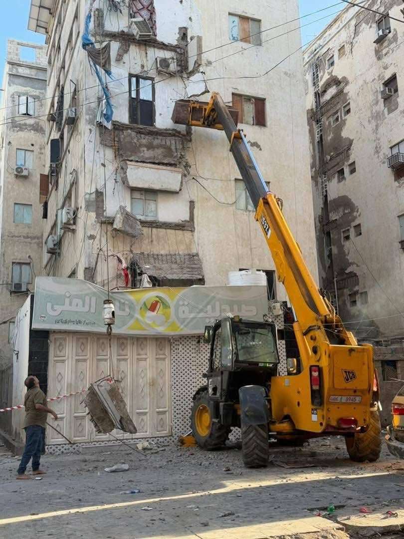 تحرك عاجل في المعلا: إزالة كتل خرسانية مهددة بالسقوط في عمارة مأرب لحماية الأرواح