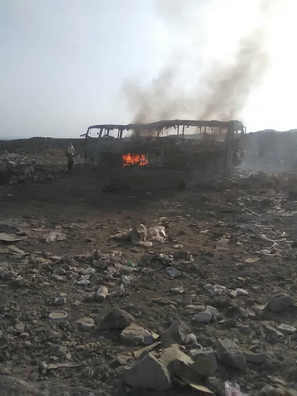 بعدها قمنا باستئجار شيول على نفقتنا الخاصة لرفع الباص وانتشال جثة اختنا وفعلا قمنا بانتشالها من تحت أنقاض الباص بحضور مسؤولي امن تلك المنطقة وقد تم تحرير محضر كامل بالواقعة بالساعة واليوم والتاريخ ، بعدها انتقلنا لمركز شرطة شقرة والحزام الأمني واستخرجنا ترخيص مرور الجثة من ألنقاط وتحركنا لعدن في موكب عدد اربع سيارات ، وعند وصولنا لعدن توجهنا لعمليات إدارة امن عدن لإكمال إجراءات ترخيص الدفن و اتضح حينها ان البلاغ قد دون بخصوص فقدان اختنا وحرر محضر العثور على الجثة ، بعدها انتقلنا لثلاجة الموتى بمستشفى الصداقة لاخراج جثة ابن اختنا ليلحق بركب والدته الشهيدة ويتم زفهم سوية لاخر مستقر أجسادهم الطاهرة ليوارى جثمانهم الثرى ويدفنا سوية .