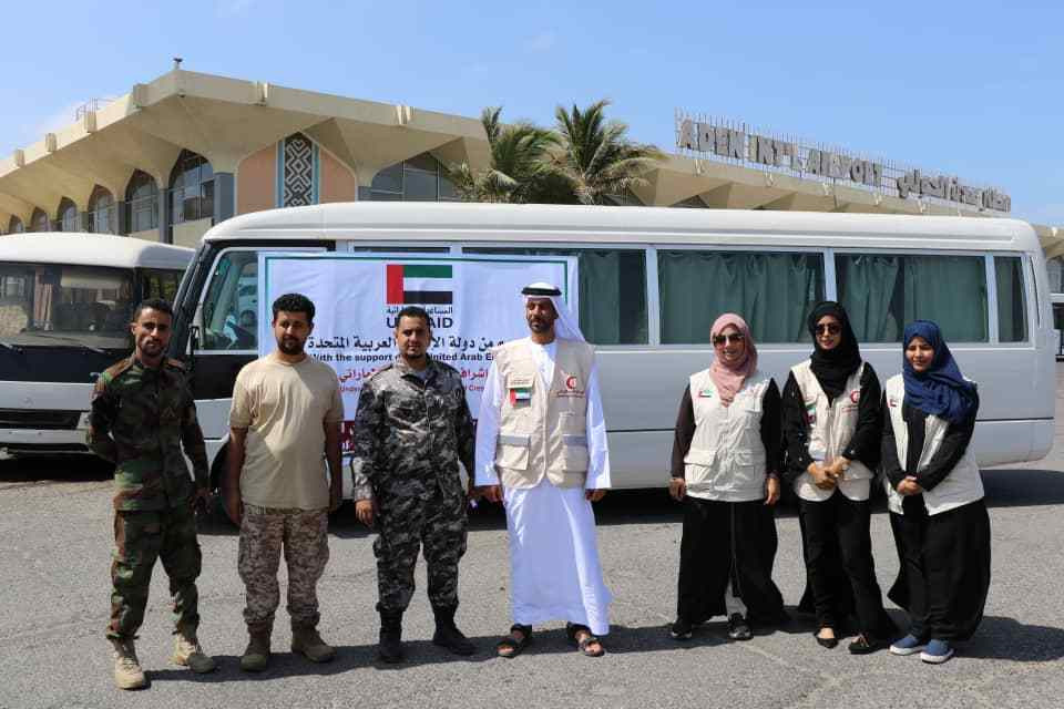 قدمت هيئة الهلال الأحمر الإماراتي صباح اليوم دعم لمطار عدن الدولي تمثل بسيارات نقل الركاب المسافرين (2 باصات) ومكيفات وأدوية للعيادة الطبية الخاصة بالمطار.