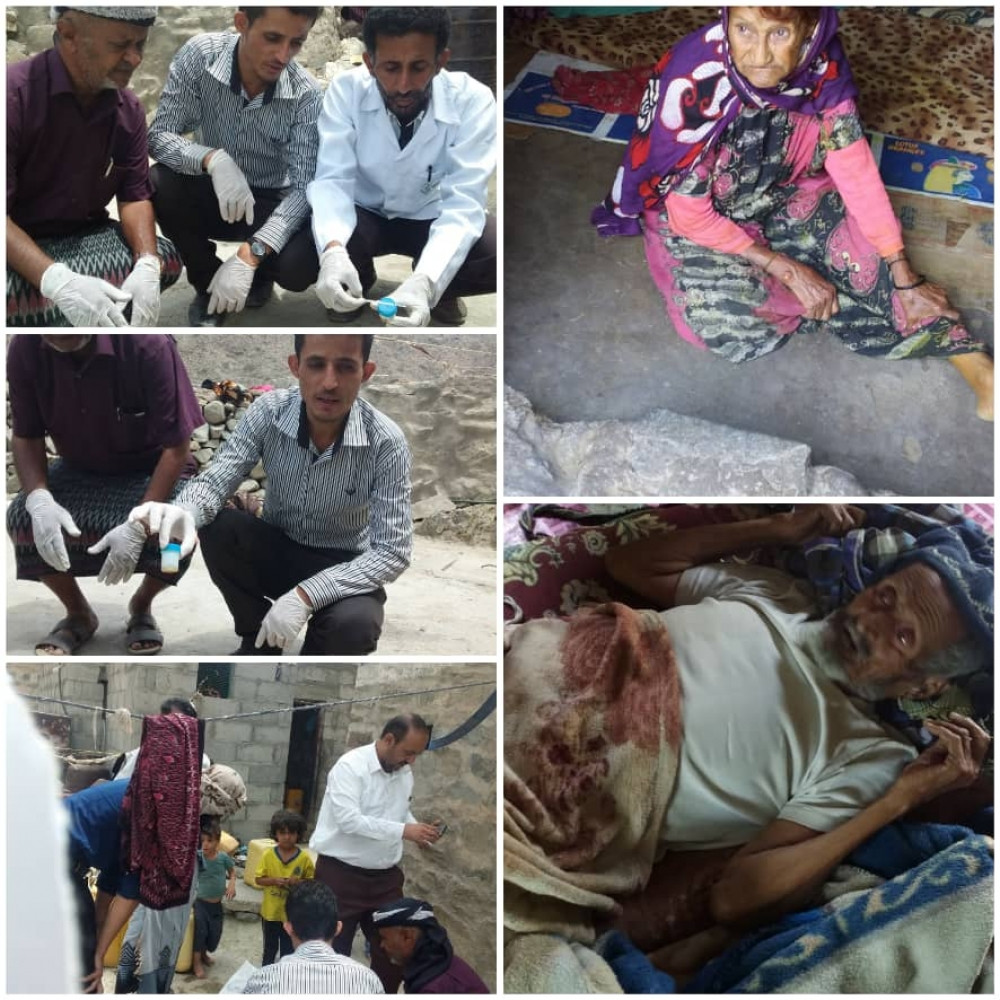 واكد الفريق بان تلك المناطق مصابة بوباء الكوليرا وتم الابلاغ عنها وتحرك فريق علاجي آخر من مستشفى رصد برئاسة الدكتور عبدالحكيم محسن وتم دعمهم ببعض المطهرات والادوية والكلور .