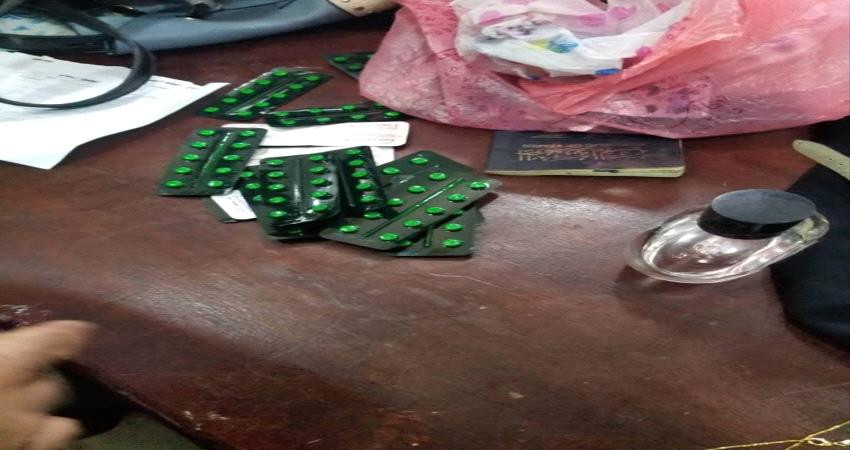 القى أمن مطار عدن الدولي القبض على إمرأه وبحوزتها حبوب مخدرة بعد تفتيشها من قبل الشرطة النسائية التابعة لقوات حماية أمن المطار بقيادة خالد الخيلي .