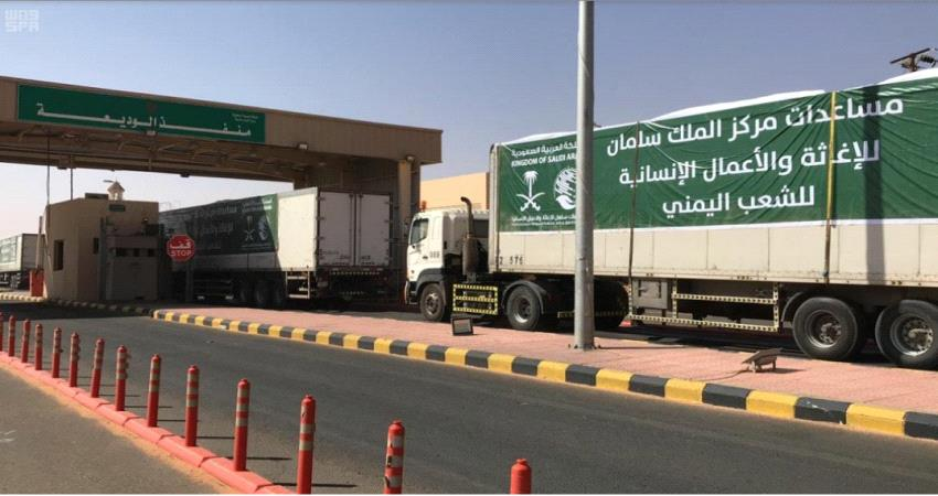 وقالت وكالة الانباء سبأ إن الشاحنات عبرت منفذ الوديعة الحدودي امس وتحمل على متنها 9,375 كرتونًا من التمور و 3 ألاف سلة غذائية، و 7,400 كرتون من اللحوم.